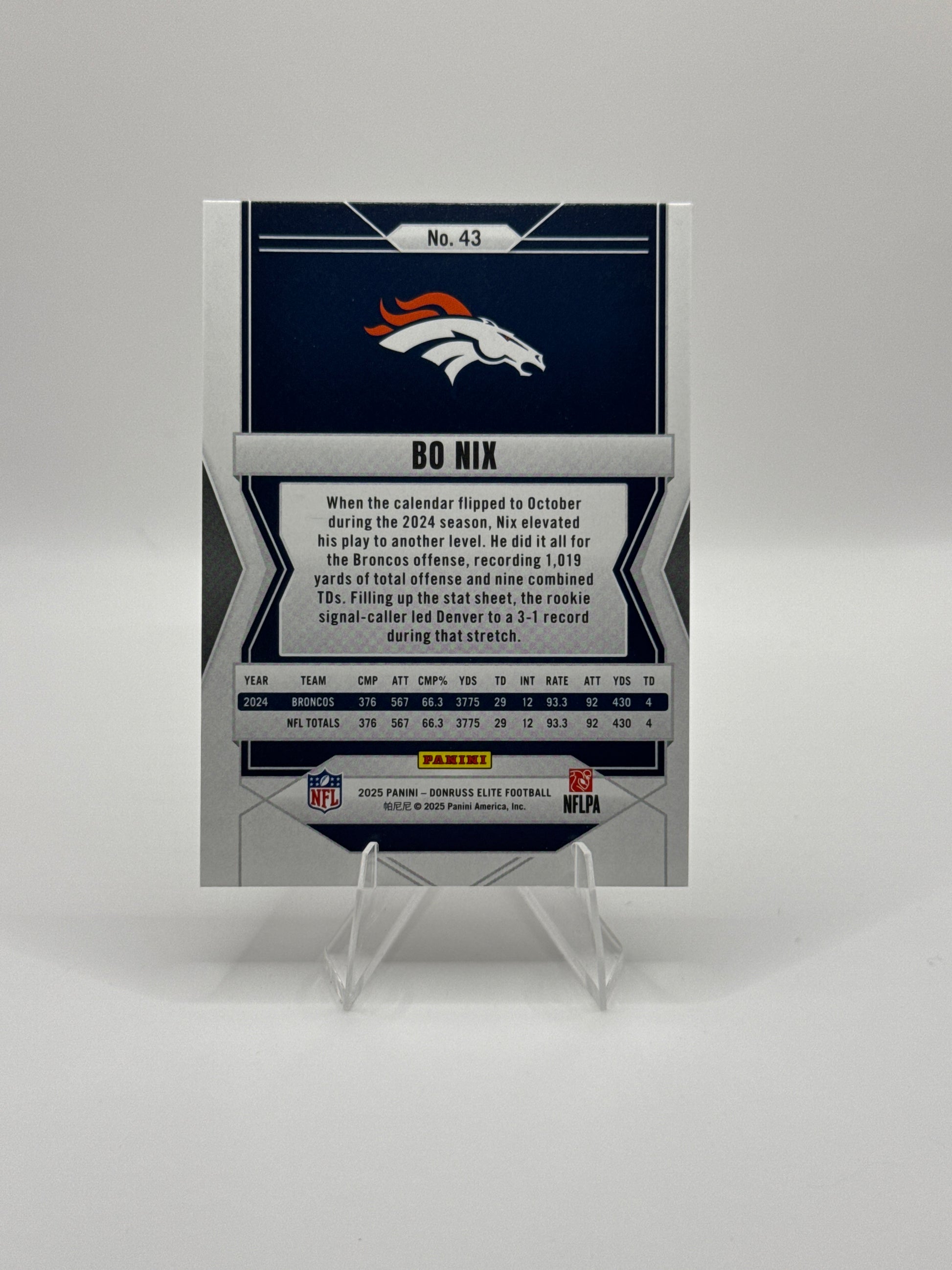 Bo Nix #43 2025 Panini - Donruss Elite Football