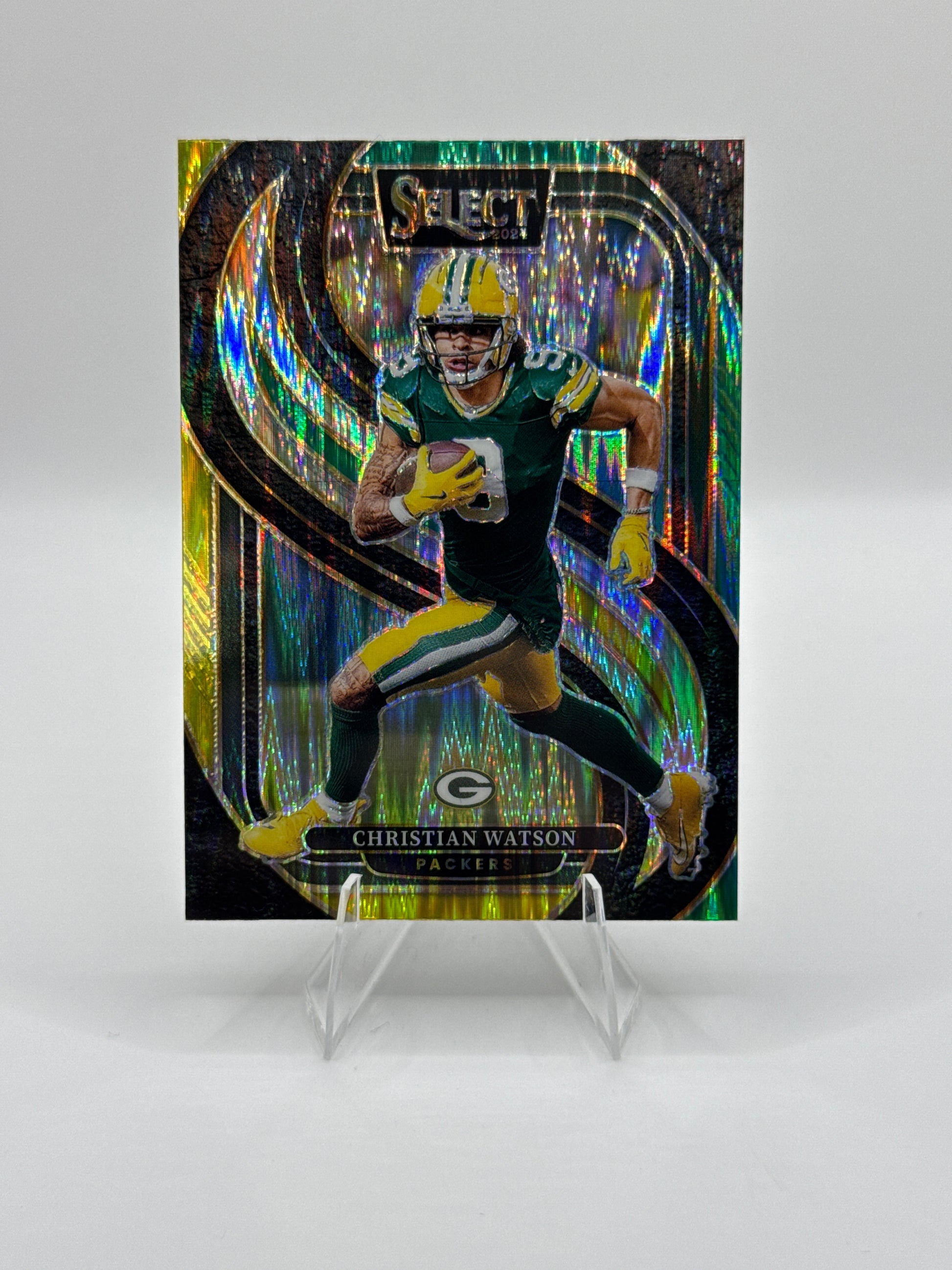 Christian Watson #138 Green Yellow Prizm Shock Premier Level - Color Match!