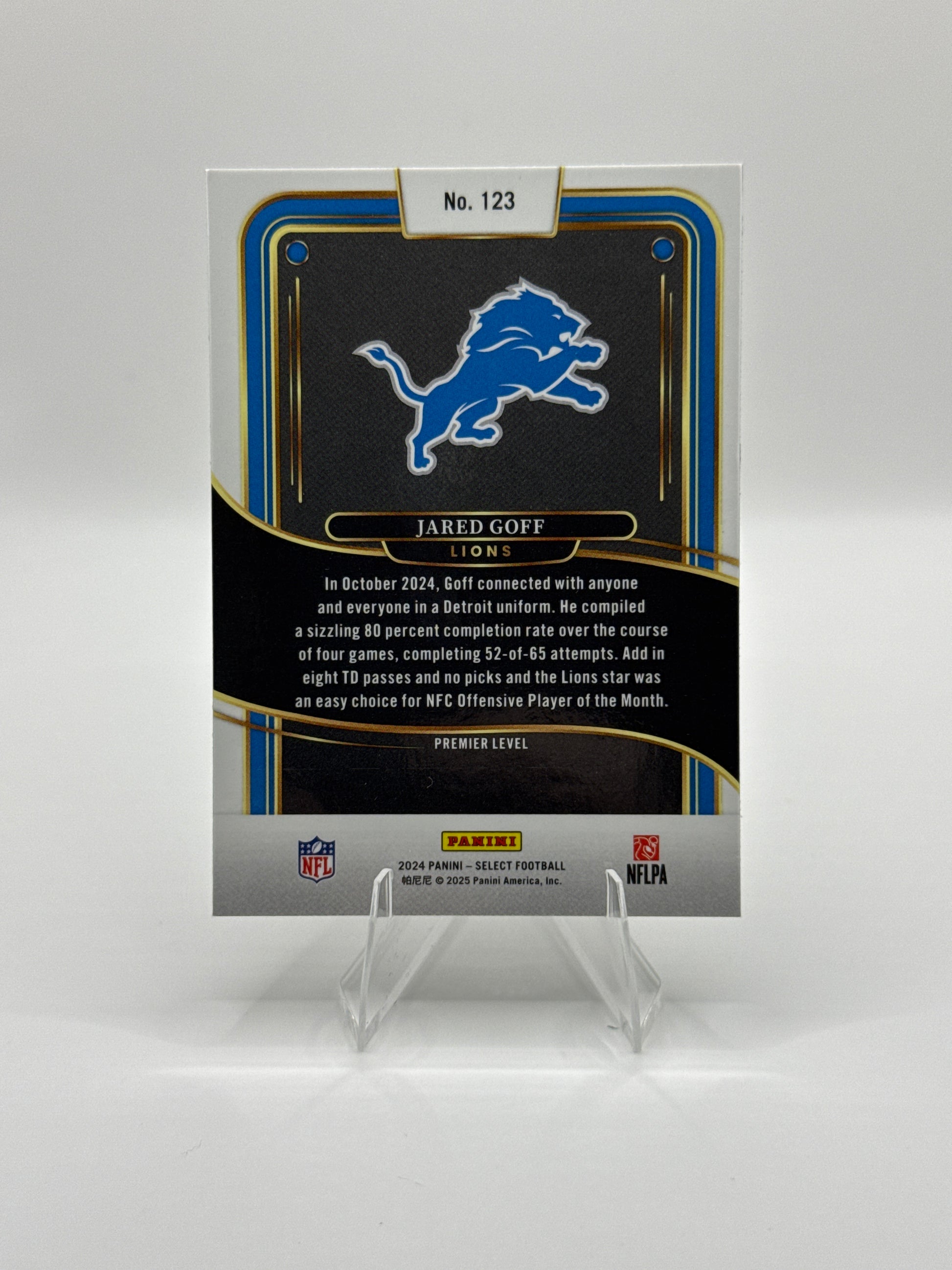 Jared Goff #123 Premier Level 2024 Panini - Select Football