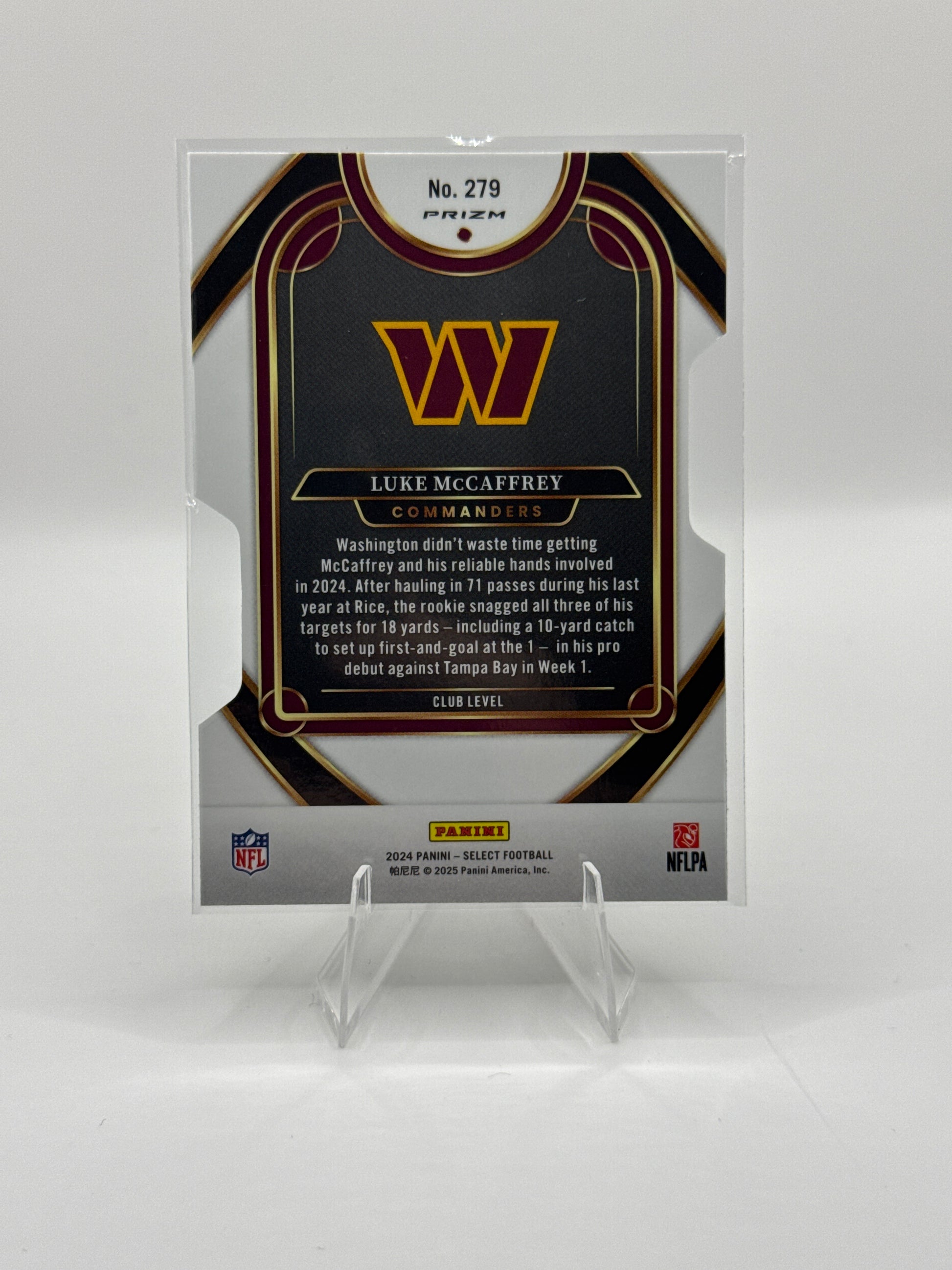Luke McCaffrey (Rookie) #279 Silver Prizm Die-Cut Club Level