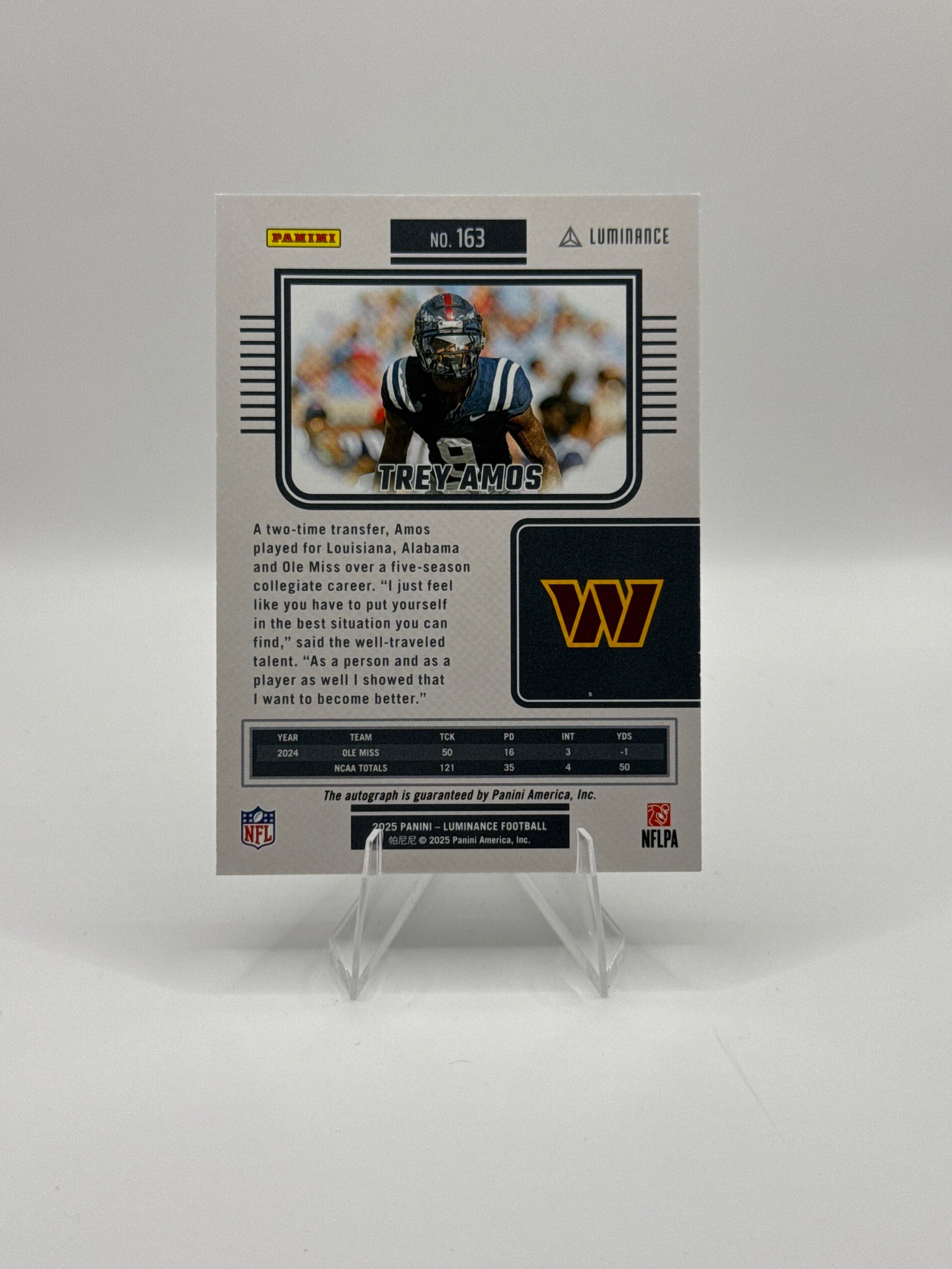 Trey Amos (Rookie) #163 Silver Auto 535/700 2025 Panini - Luminance Football